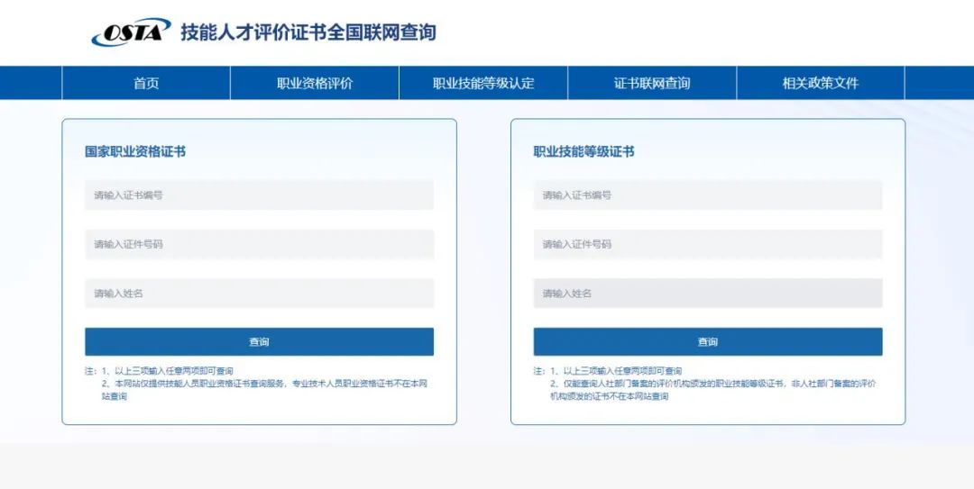 查询网址:http://zscx.osta.org.cn/ 证书人社部管官网查询,全国通用